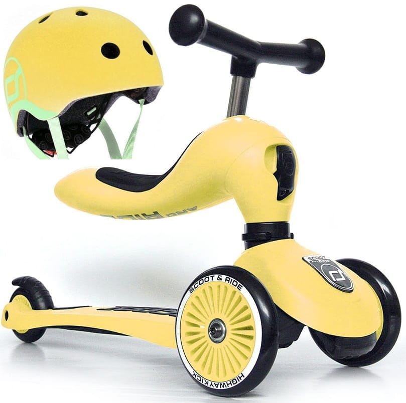 SCOOTANDRIDE Zestaw Hulajnoga 2w1 + Kask XXS-S Lemon 1+