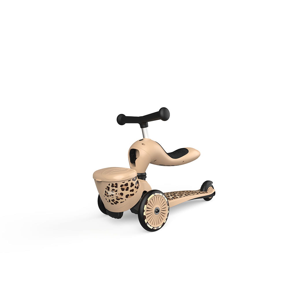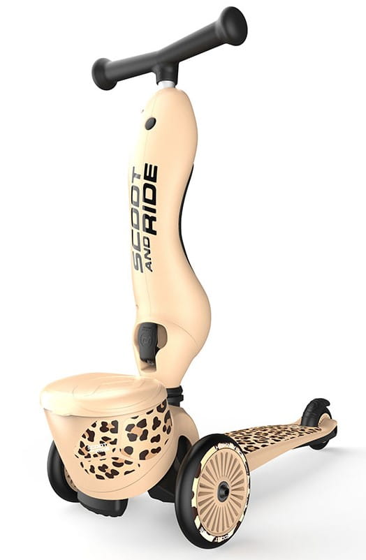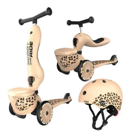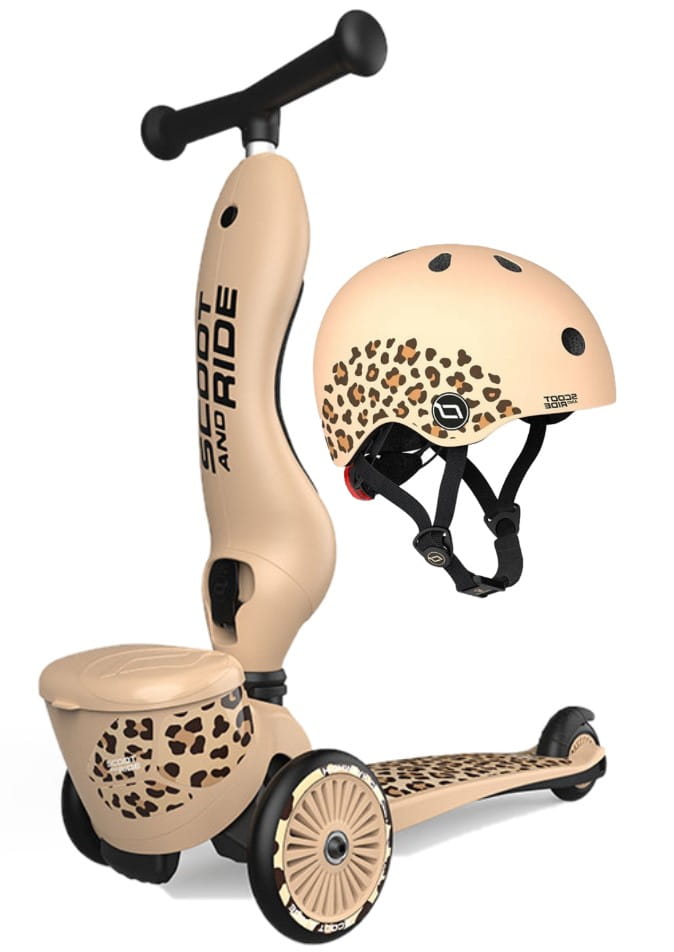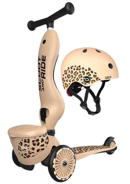 ZESTAW SCOOTANDRIDE Highwaykick 1 Lifestyle 2w1 Jeździk i hulajnoga z zamykanym schowkiem + kask Leopard